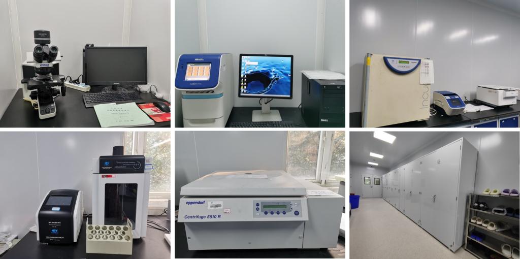 实验室现有建筑面积300 m2;建有生物安全二级实验室,生物安全一级实验室,按功能划分有分子生物学实验室、分子免疫学实验室、细胞生物学实验室;实验室具备较完善的硬件设施,包括荧光定量PCR仪、梯度PCR仪、高速冷冻离心机、小型离心机、生物安全柜、洁净工作台、各种生化培养箱、高压灭菌器、酶标仪、倒置显微镱、图像分析仪、液氮灌、纯水仪、超声乳化仪、各种规格振荡仪、各种规格水浴锅、超低温冰箱、磁珠分选仪、垂直电泳及水平电泳设备、干燥箱及各种微量移液器等。