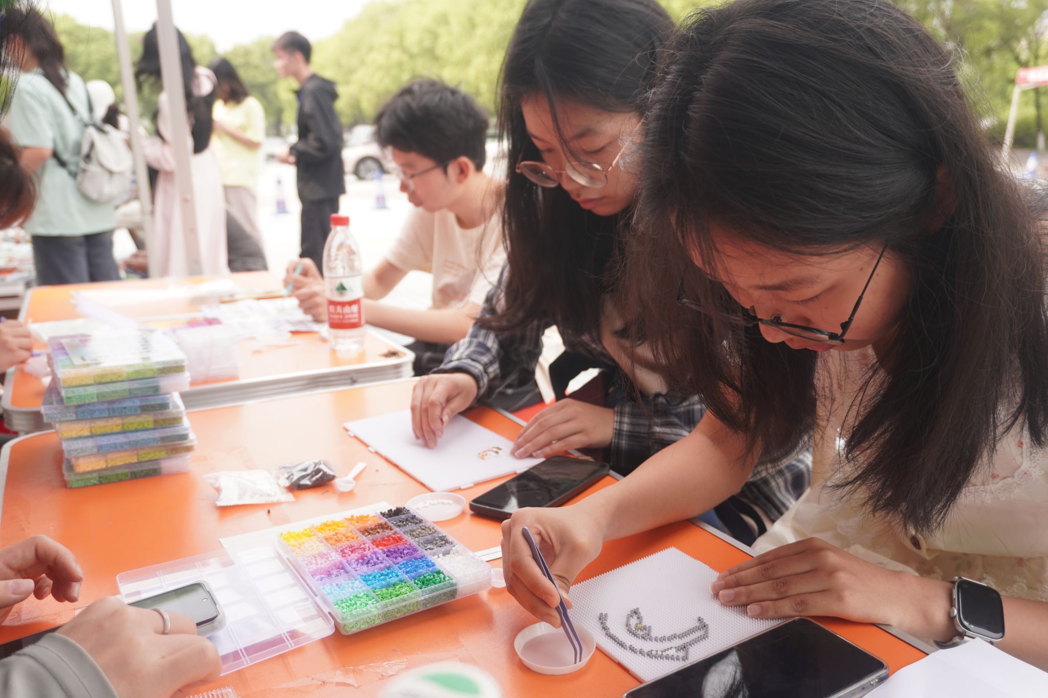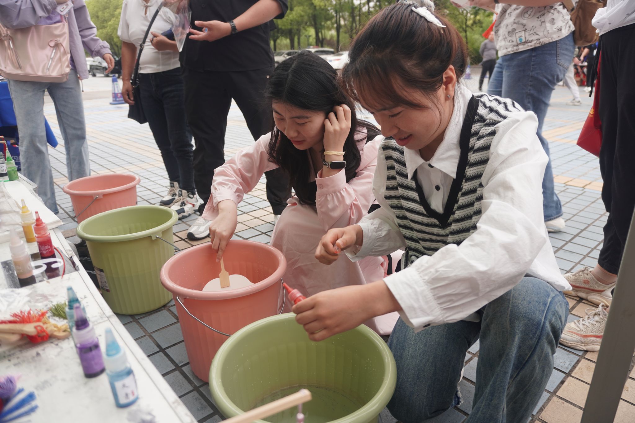 本次游园会主要分为三部分内容,游戏区、实践区 、体验区 。游戏 区内 ,乒乓球化舟“漂洋过海” 、篮球击瓶奏响春日欢歌 、谜韵雅集 中探秘春日新语、“你画我猜” 无声默契交流、 “盲人摸象”感受 春末气息 。 实践区内, “飘漆纸扇”以漆为墨 、 “彩绘萌宝”执笔绘梦 、 “拓绿凝香”撷花拓印 、 “豆豆拾趣”自主拼贴 、 “花韵香氛”干花药草交织 、 “墨香染韵” 书写生机,每一个项目都寄寓春日深情 。体验区内,纸捞金鱼,融体验与挑战一体,提升手眼配合;口腔保健工作坊,聚焦牙齿健康教学,增强口腔护理认知。