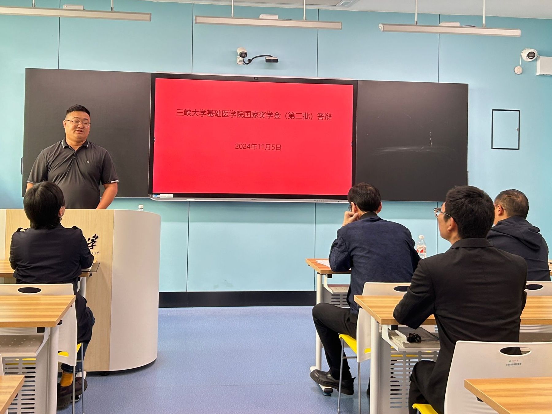 (通讯员 张粤 陈澄 皮宝芹)为扎实做好国家奖学金评选工作,发挥榜样引领示范作用,激励全院学生追求卓越。11月5日,基础医学院在生命科学楼1202教室举行了2023-2024学年本科生国家奖学金(第二批)初评答辩会。党委副书记江雄、学院领导宋银宏、病理系主任鲁华、教学办主任邹文君、学工负责人苗祥波、2021级辅导员刘雪梅出席答辩会并担任评委,现场会议由学院资助专干张粤主持。