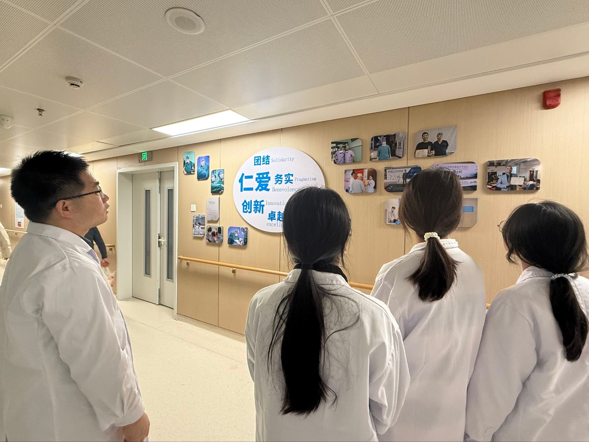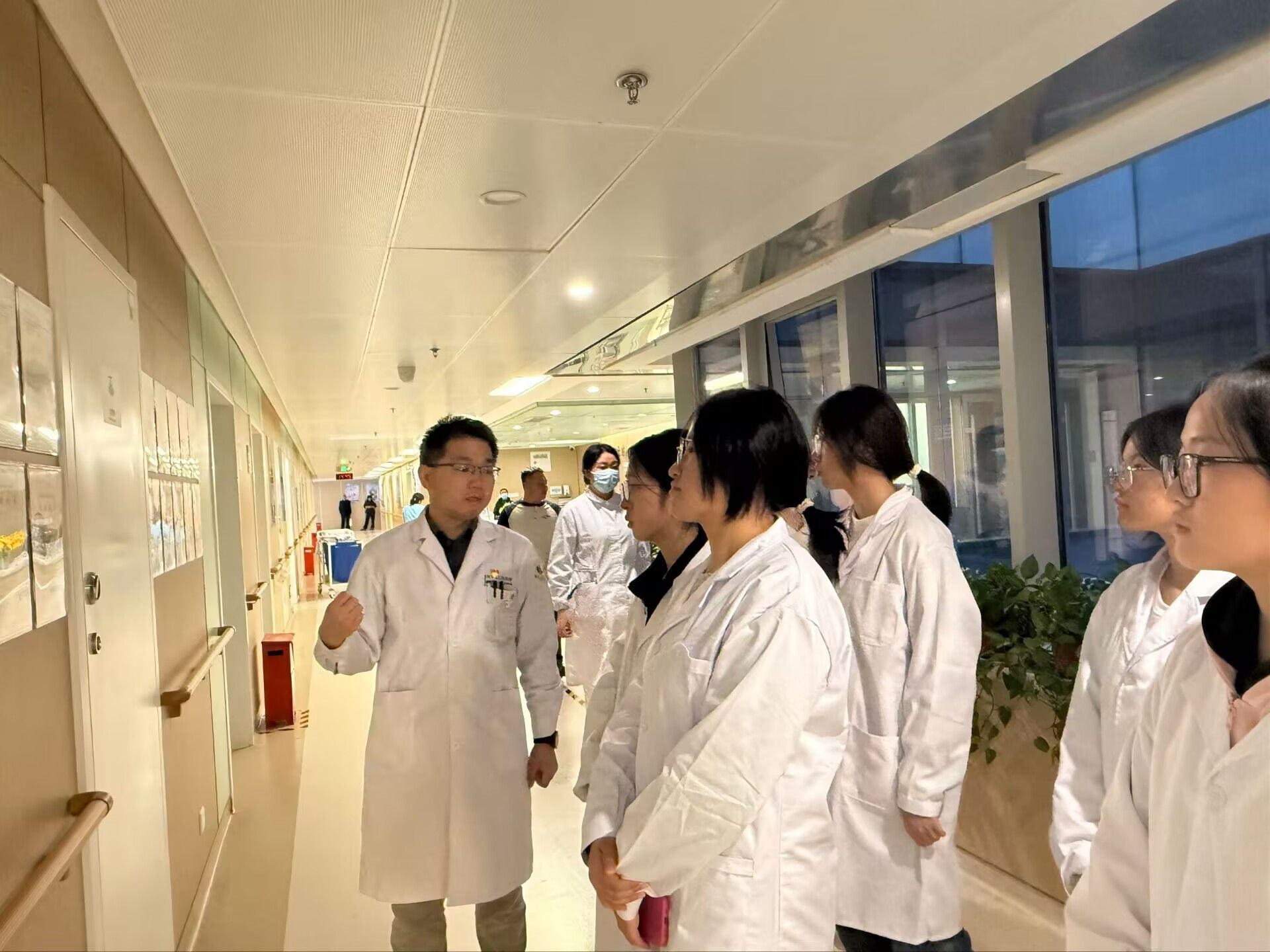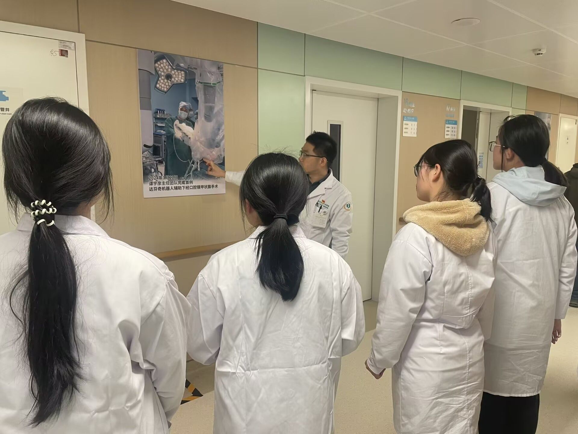 下午1点45分,同学们在马岚老师的统筹下有序抵达医院。根据提前制定的见习方案,40名同学按6-7人规模分为6组,每组由指定小组长负责联络协调,各组均明确了组长联系方式及对接科室。首轮见习于2点45分正式启动,6个小组在中心医院教学办钟老师带领下分别前往对应科室:甲乳外科跟随张承武医师学习,二组赴骨外科聆听龚春龙医师讲解,三至六组则分别对接泌尿外科、胃肠外科、肝胆外科及血管外科,肖建华、徐瑞、邢荣春、官文飞等资深医师全程带教。3点45分,首轮见习结束,各组按计划轮换科室,新一轮实践学习在各楼层同步展开。马岚老师穿梭于各科室,随时结合解剖学理论为同学们答疑,确保“临床案例”与“课本知识”精准呼应。