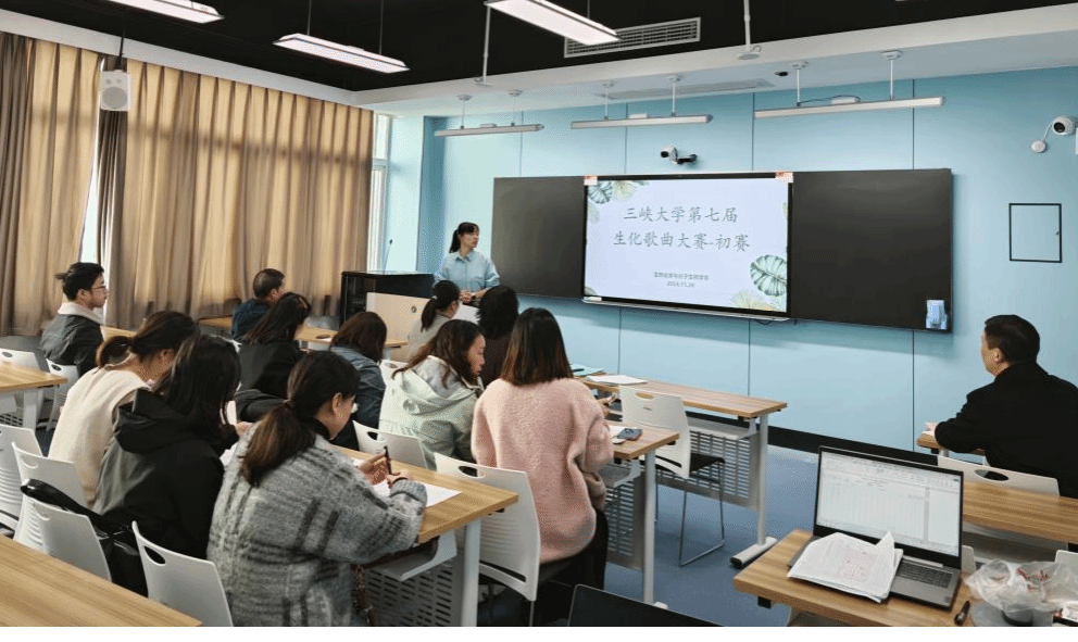 (通讯员 王栎清 刘晓雯 彭帆)2024年11月28日,三峡大学第七届生化歌曲大赛的初赛正式拉开序幕。此次大赛吸引了来自基础医学院、健康医学院、科技学院、生物与制药学院、文学与传媒学院、艺术学院、水利与环境学院等七个不同学院的47支队伍,共计近200名热情洋溢的同学踊跃参与。这些参赛队伍不仅展示了他们对音乐的热爱,也体现了三峡大学学子在艺术与科学领域交融的创造力和活力。