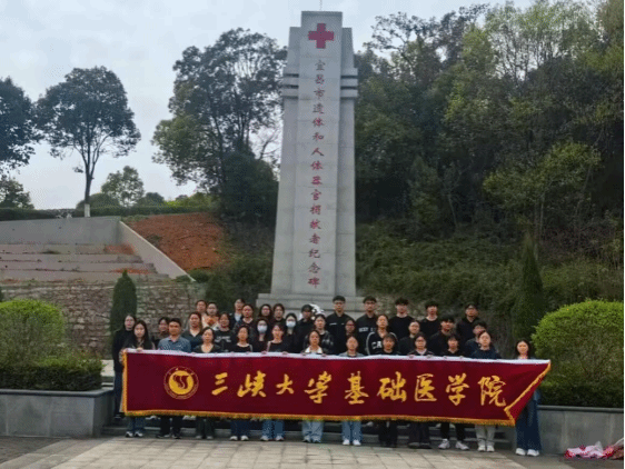 【通讯员 陈诗芮 刘景】为深化医学人文教育,感谢遗体捐献者的无私奉献,3月27日下午,我校基础医学院联合宜昌市红十字会,组织师生代表前往水晶山陵园开展“局部解剖学课程思政课外实践活动”。基础医学院学工办教师、解剖实验室与教研室教师代表、红十字会工作人员及30名基础医学院学生共同参与。