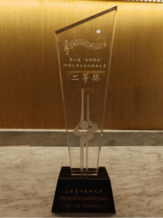 【通讯员 彭帆 刘浩然 刘亚云】3月22日,由中国生物化学与分子生物学会教育专业分会主办、山东第一医科大学承办的中国大学生第八届“金斯瑞杯” 中国大学生生物化学歌曲大赛已落下帷幕。本次大赛强手如林,由北京协和医学院、上海交通大学、南京大学、中山大学、中国科学技术大学、空军军医大学等全国71所高校创作的73首作品同台竞技。我校基础医学院“迷人的酮体”队凭借作品《酮体和你在一起》,以科学与艺术交融的创意表达,在激烈角逐中斩获全国二等奖!
