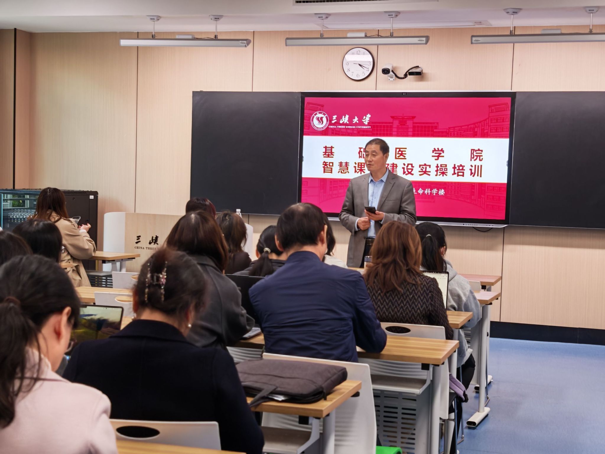 培训伊始,张世忠在开场致辞中强调了智慧课程建设在医学教育改革中的核心地位。他指出,随着信息技术与教育教学的不断融合,传统医学教学模式正面临新的挑战与机遇,智慧课程不仅能丰富教学内容呈现形式,更能精准对接医学人才培养需求,提升学生自主学习能力与临床思维能力。“全体教师需以此次培训为契机,主动转变教学理念,熟练掌握智慧教学工具,将其切实应用于日常教学中,打造一批具有医学特色、符合学生认知规律的优质智慧课程。”