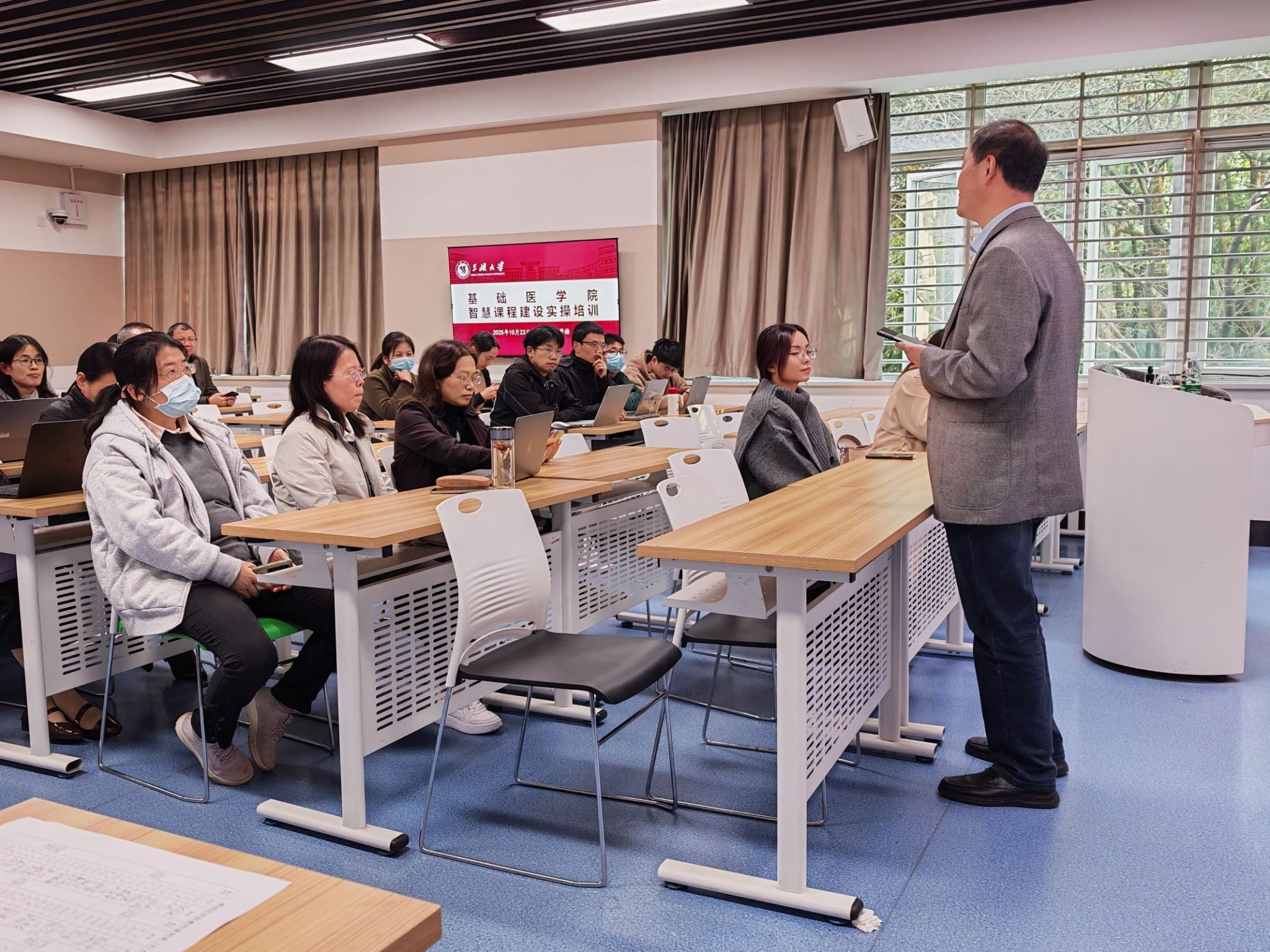 培训过程中,全体教师学习热情高涨,认真聆听讲师讲解,积极参与互动交流与实操练习。此次智慧课程建设实操培训会的成功举办,不仅使基础医学院全体教师系统掌握了智慧教学平台的使用方法与智慧课程建设的核心技巧,更推动了教师们教学理念的更新与教学能力的提升。下一步,基础医学院将以此次培训为起点,组织教师们结合所授课程实际,加快推进智慧课程建设与应用工作,定期开展智慧课程建设经验交流活动,不断优化智慧课程教学模式,以智慧课程建设助力医学教育改革,为培养高素质医学人才奠定坚实基础。