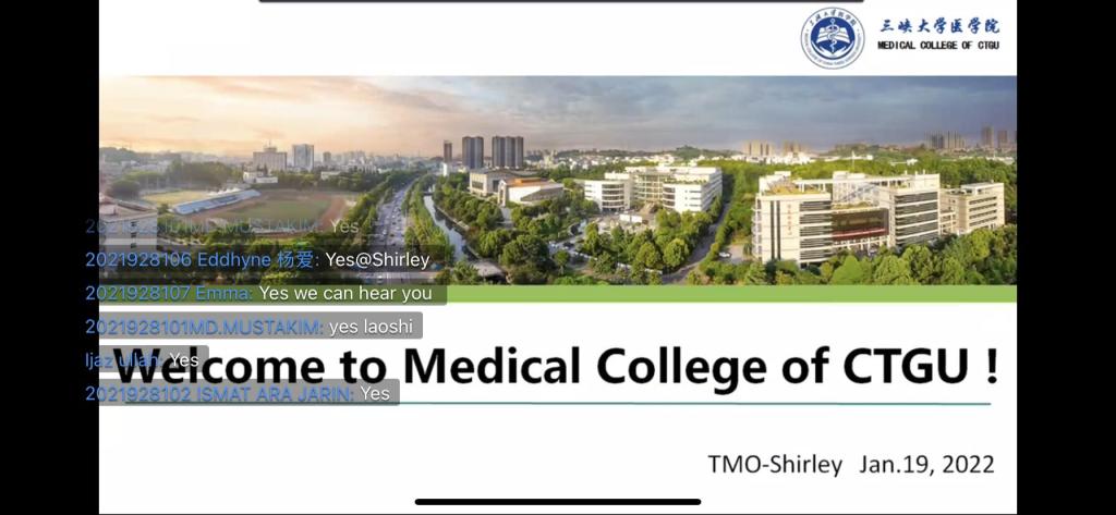 2016级学生SAGAR给新生们分享了自己在中国、在三峡大学的所见所闻,尤其是新冠肺炎疫情发生以来,中国政府、学校和老师们给予他们的关怀与帮助,同时鼓励新生们要珍惜在三峡大学医学院的学习机会;随后各位新生纷纷进行了简短的自我介绍,来自加蓬的EMMANUELLE VLADIA表示对即将在三峡大学医学院开启的学习充满了期待,衷心的感谢学院帮助新生们尽快融入新的学习生活环境,并表示将刻苦学习中国文化和专业知识,为中国和加蓬的沟通交流发挥好桥梁纽带作用。