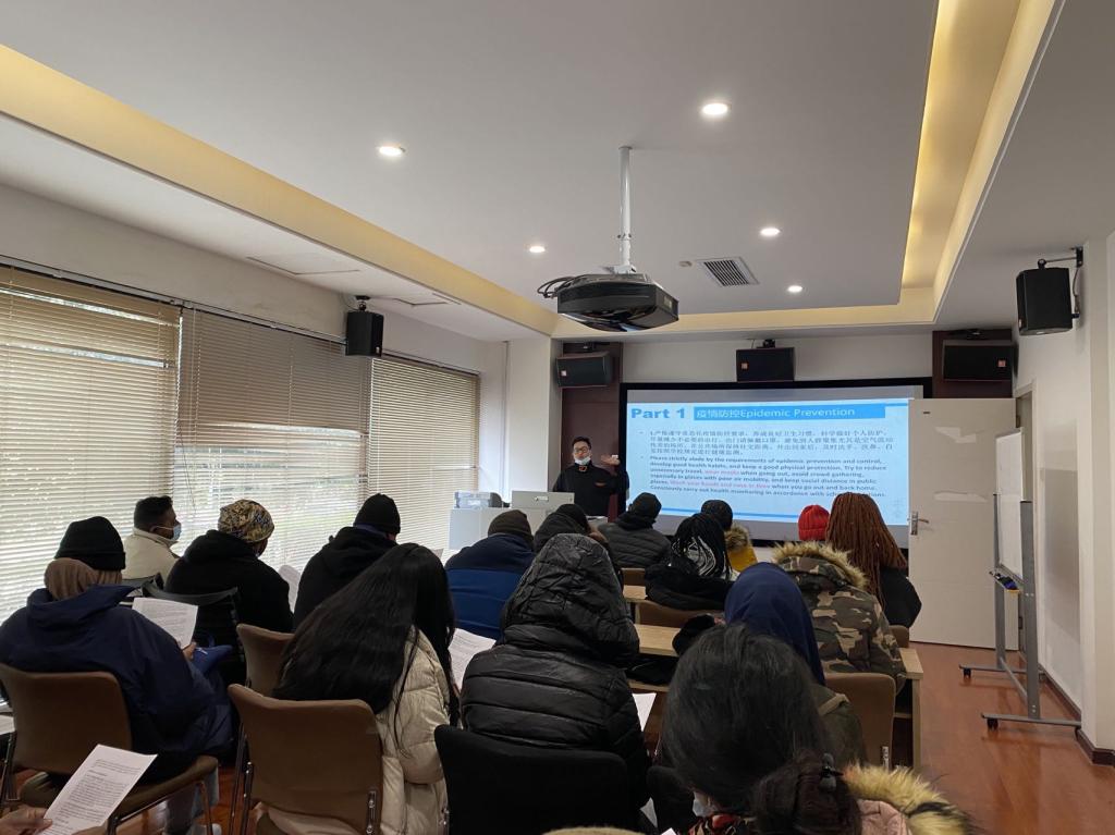 张克宇从“疫情防控、住宿安全、交通安全、法律法规、财产安全”五个方面对学生提出了相关要求,带领全体学生一起学习了《三峡大学来华留学生2022年寒假安全告知书》,并且签订了《留学生寒假安全承诺书》;并且着重介绍了当前境内外疫情形势,要求全体留学生做好个人防护,坚持“非必要不外出”原则,严格履行请假手续,假期合理安排自己的时间和生活,积极参加校院组织的活动,严格遵守中国的法律法规和校纪校规。
